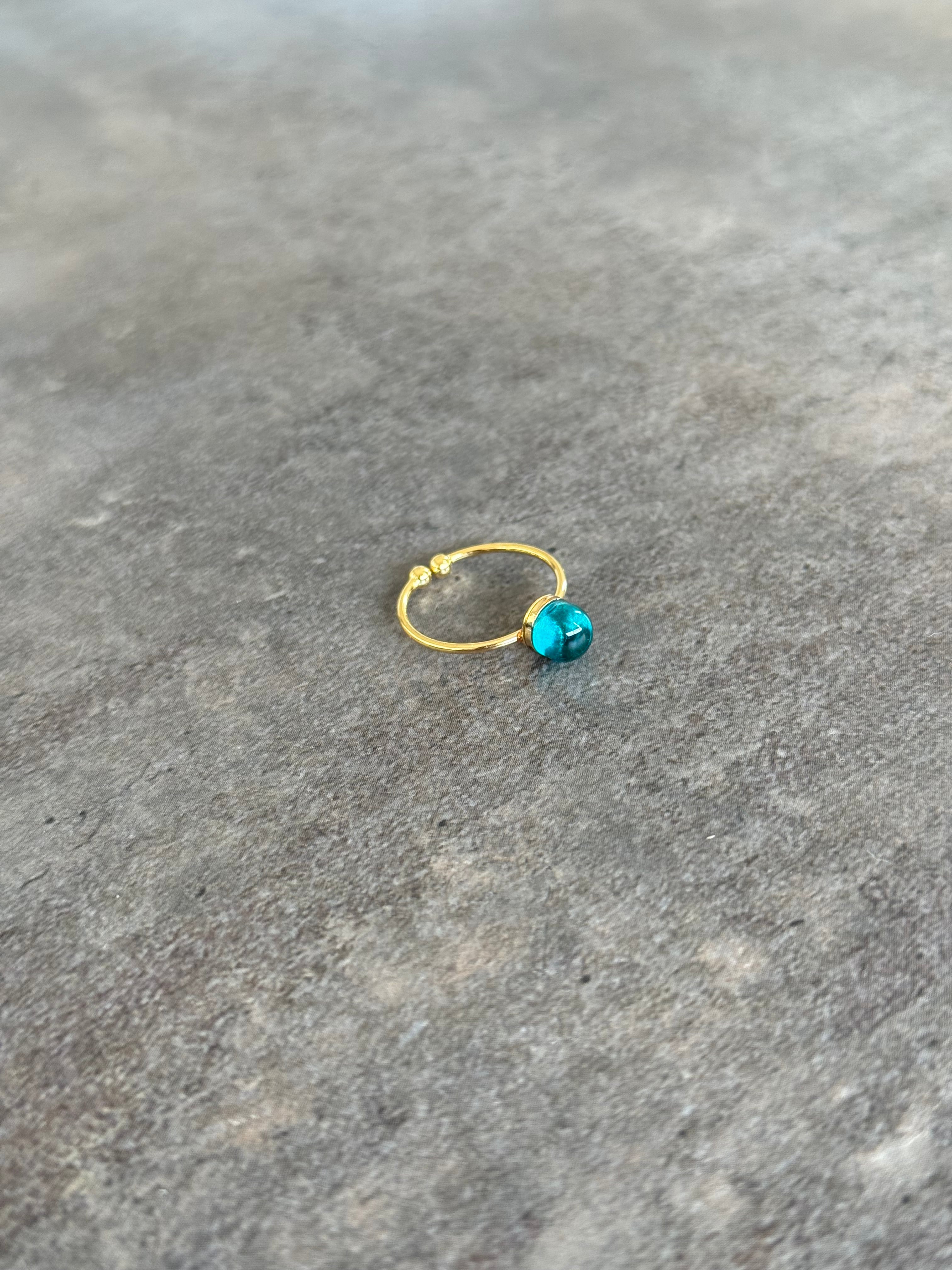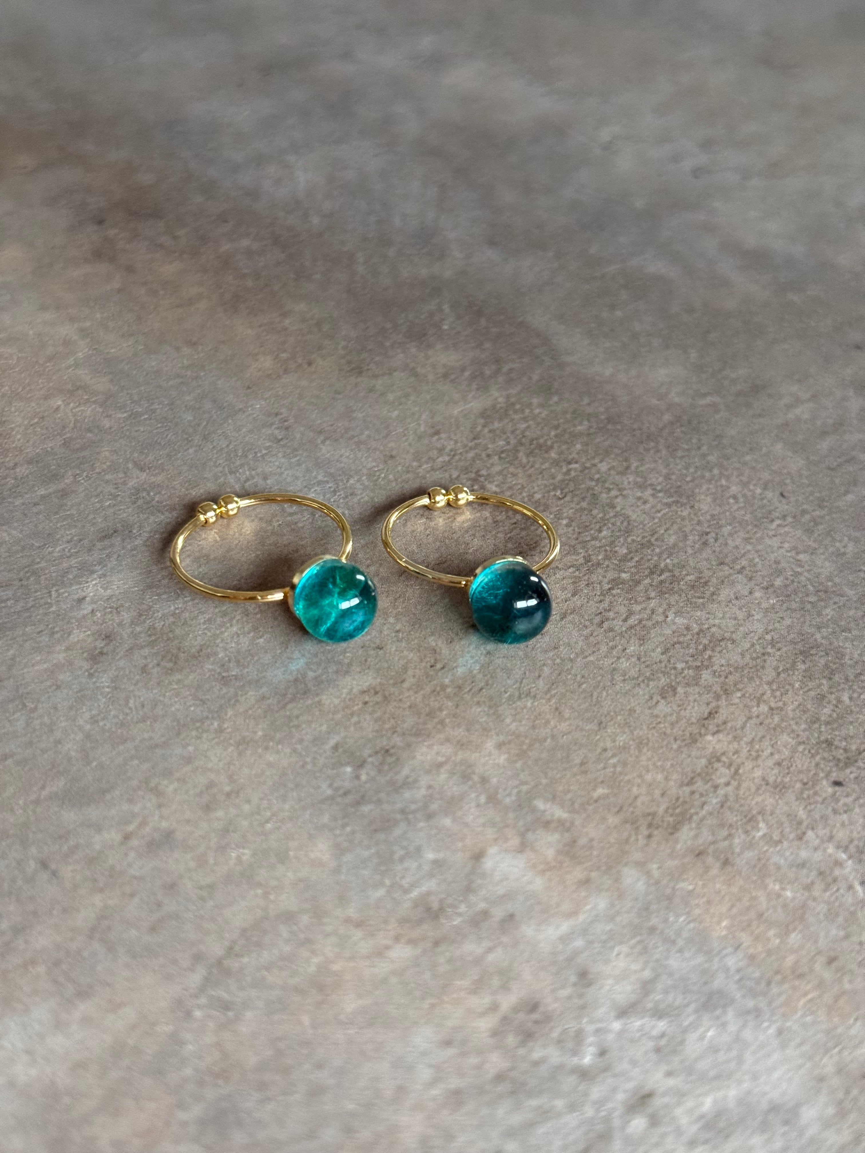 「見に纏う、碧の揺らぎ」 8mm|指元に、澄んだ光が舞う主役の粒。 _________________________ 色のつくりかた この作品は、着色液による染め色ではなく、 解かれた「繊維」を幾重にも重ねることで ひとつの色を生み出しています。 繊維の質感そのものを「色」として捉えることで、 描く着色では到達できない、深い奥行きが生まれます。 手元を動かすたびに移ろう、 複雑な表情の変化をお愉しみください。 _________________________ ひとつだけの表情 繊維の舞い方や重なりは、 素材との対話から生まれる一度きりのもの。 同じ表情のない「不揃いの美しさ」は、 循環する物語の、ある一瞬を切り取った姿です。 その瞬間の気配を、静かに閉じ込めています。 _________________________ 素材・仕様 素材:独自加工繊維/レジン 径(作品部):約8mm リング:真鍮(電気メッキ) サイズ:フリーサイズ(最小サイズ 約9号) ※アーム部分をゆっくり動かすことで、ご自身で 微調整いただけます。 _________________________ 造形と日常 繊維が漂う、静かなしるし。 日常に溶け込みながら、 ふとした瞬間に、確かな印象として残る。 8mmという一粒には、 眺めたくなる揺らぎの深さを宿しています。 その存在はさりげなく、 しかし確かな存在感を放ちます。 なにげない日常を、 静かに深く彩りますように。